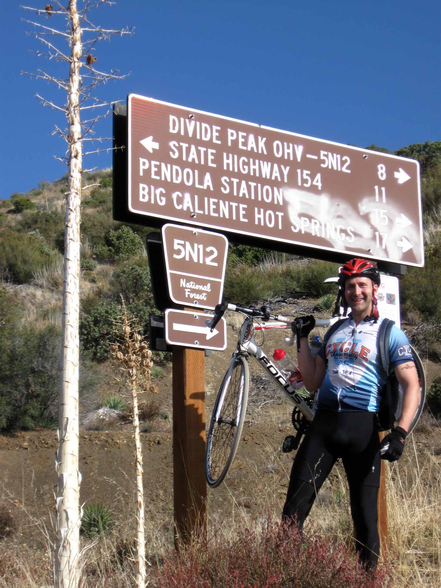Route: home>San Marcos>turnaround at Hwy 154>Cathedral Oaks>Hope>San Remo>Paseo Del Sol>Mission Ridge>Mountain Dr>down Romero Canyon>EVR>Ortega Ridge>LUNCH at Stacky’s>turnaround>Biltmore>State>Bath>Treasure>home