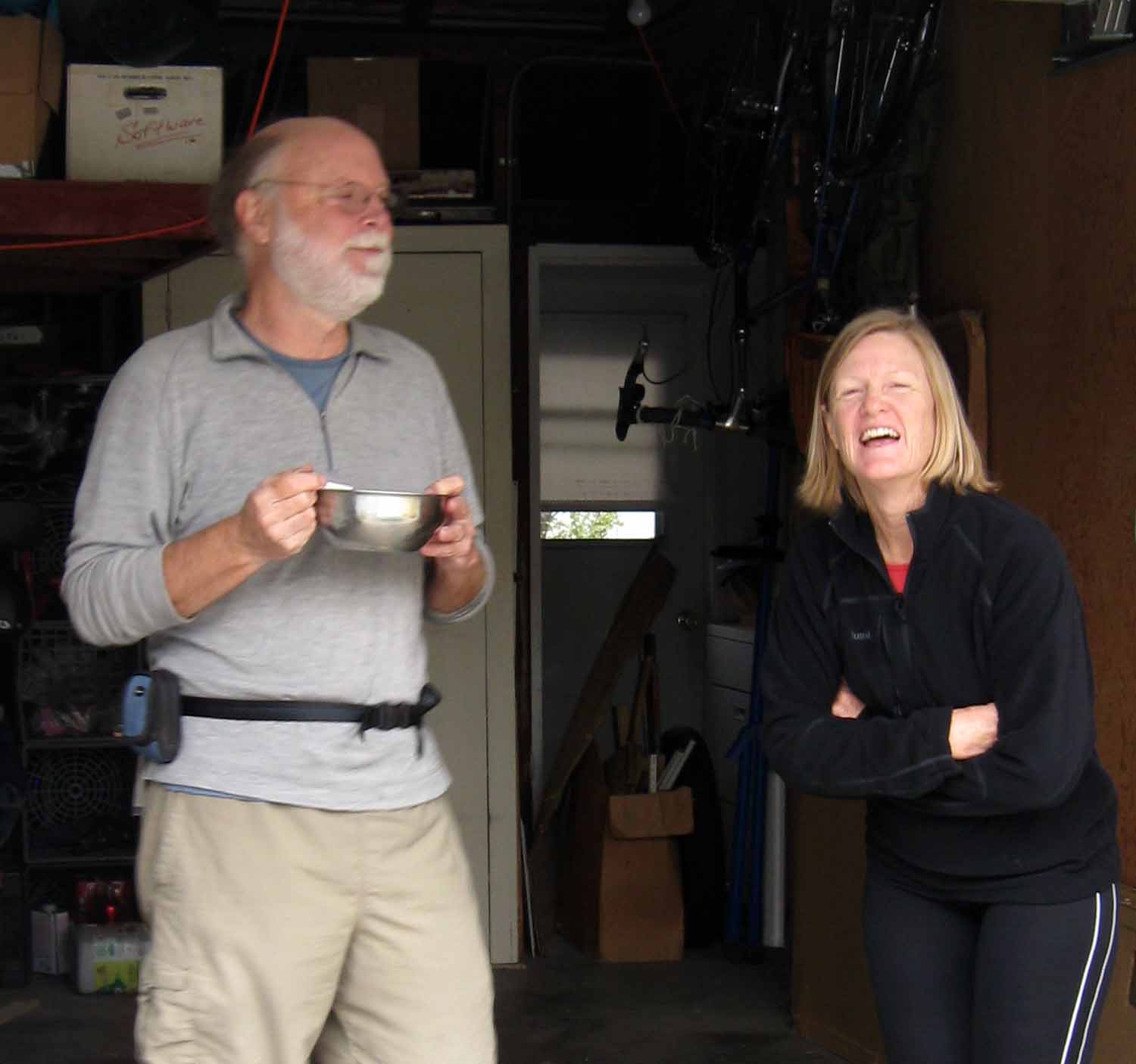 Breakfast time in Ashe’s garage before taking off.