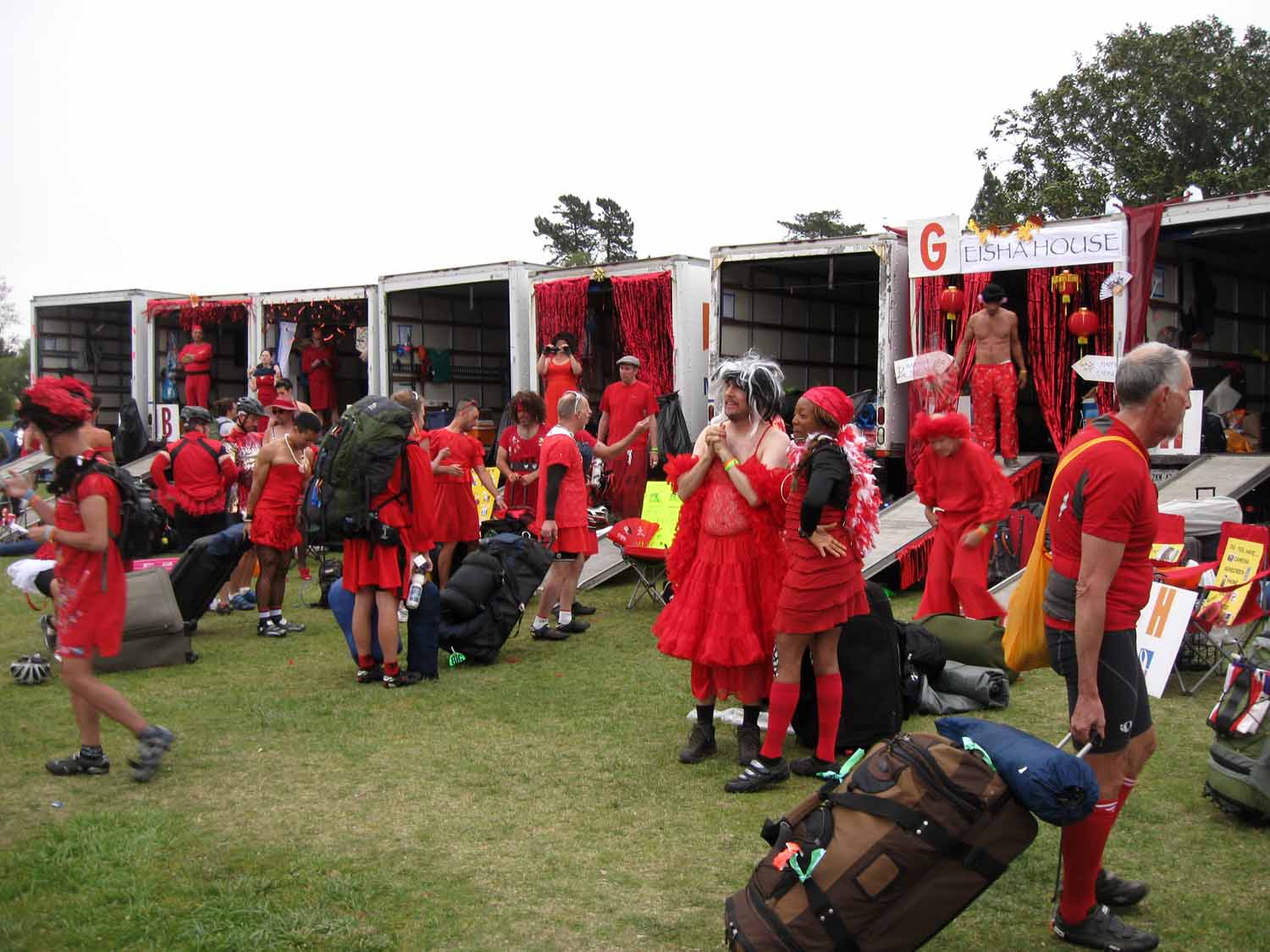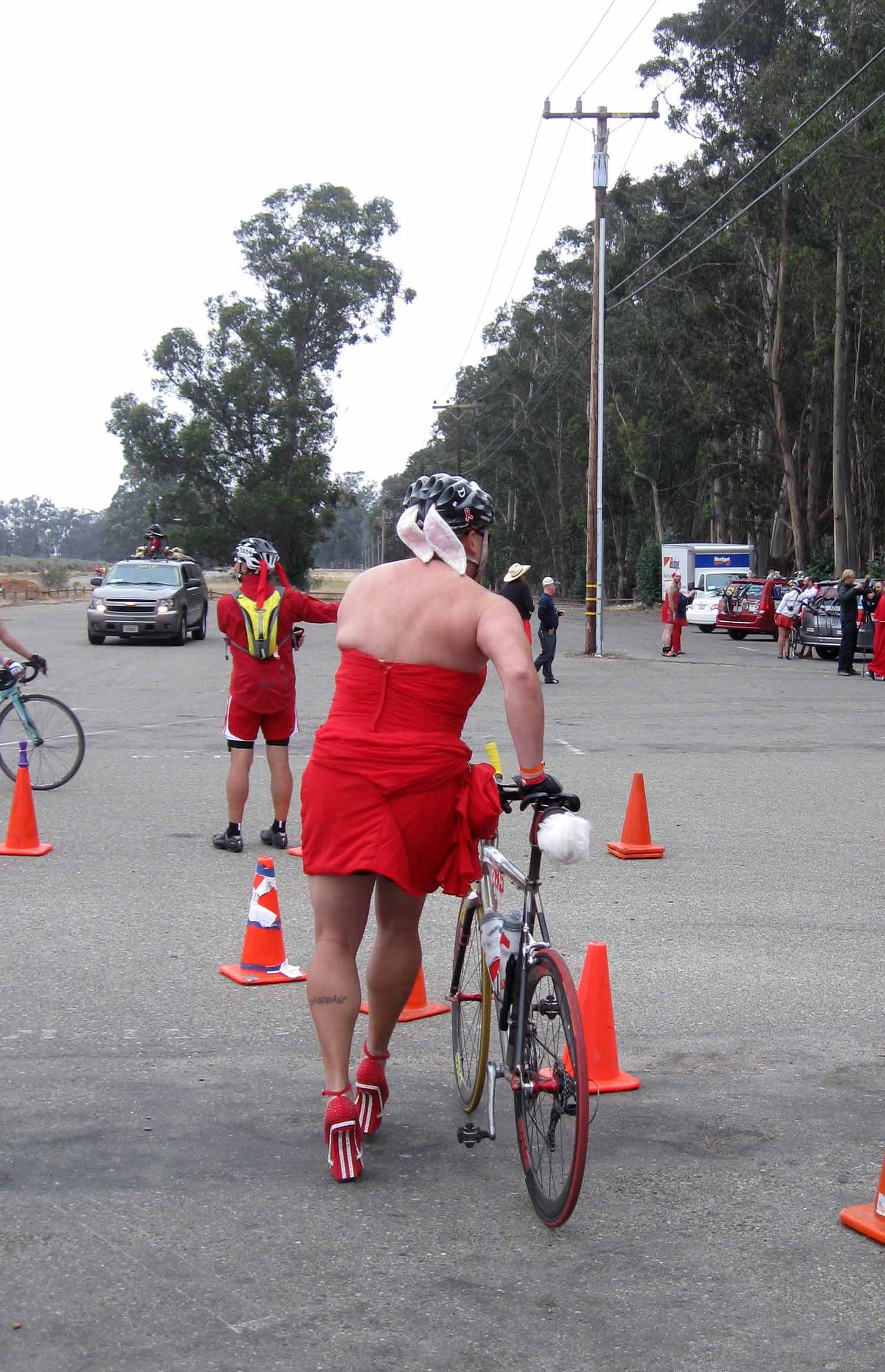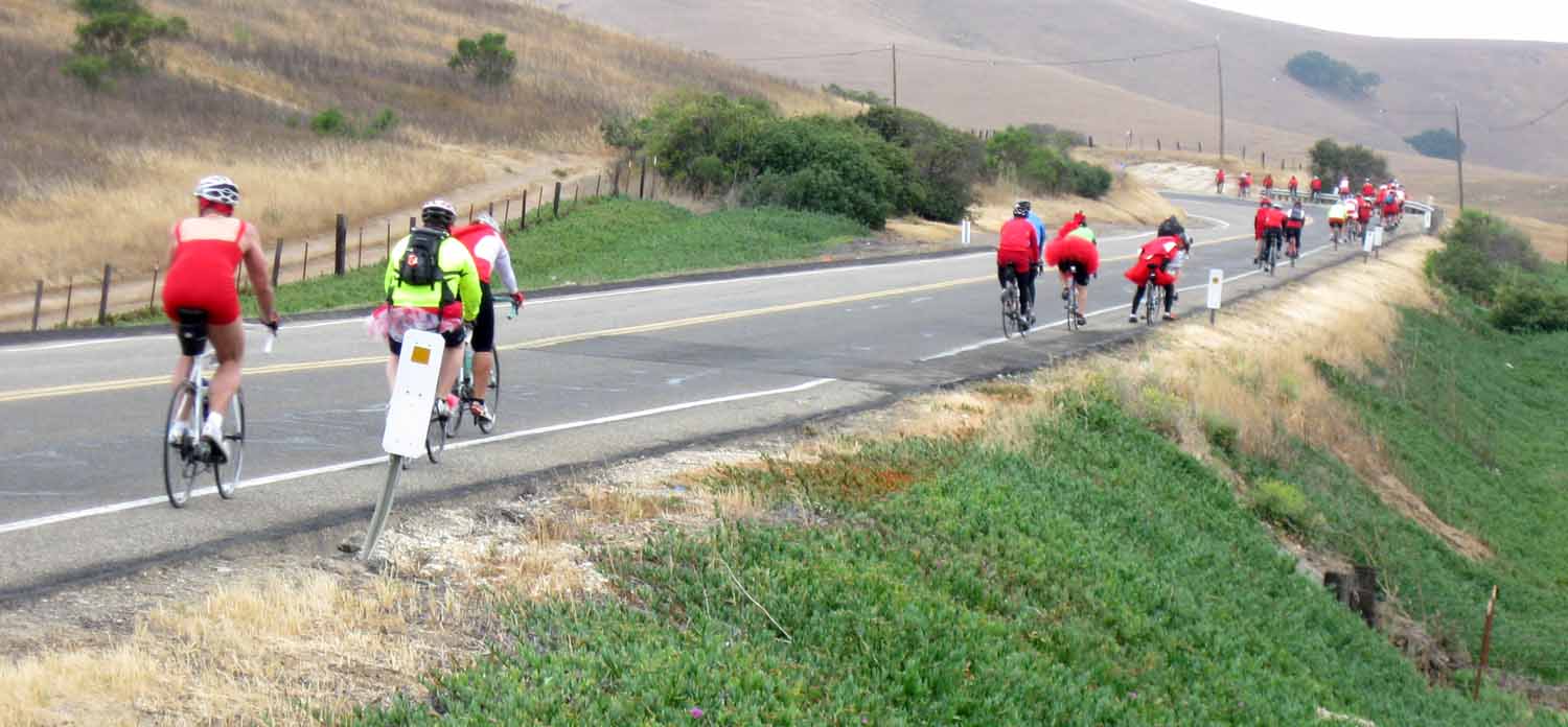 Red riders, seen as the AIDS red-ribbon symbol,….a bit stretched out , but still a moving red ribbon.