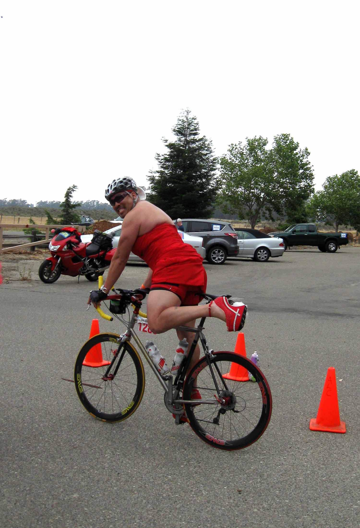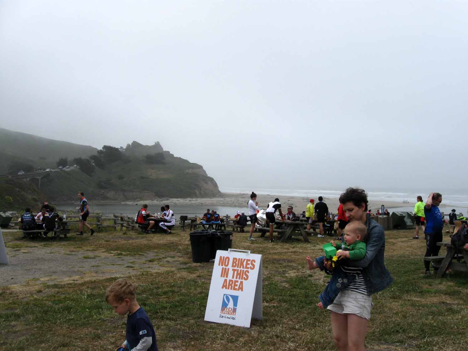 Assembled the Red Helmet (yes, definitely a task better done the night before), dressed, and got on the road. Weather a bit on the cool side, so started with non-red outer layers to keep warm (Leg warmers, Patagonia vest, long sleeve shirt. As the day progressed, the layers never came off. Red did not show on Tom all day, until setting up the tent in camp. Good day as far as no winds and no aches or pains. Tented off the grid, at lake front plot. There were sounds and sights of frogs, ducks, and geese. Next year, stake out the East lake front grove. Ate two dinners.